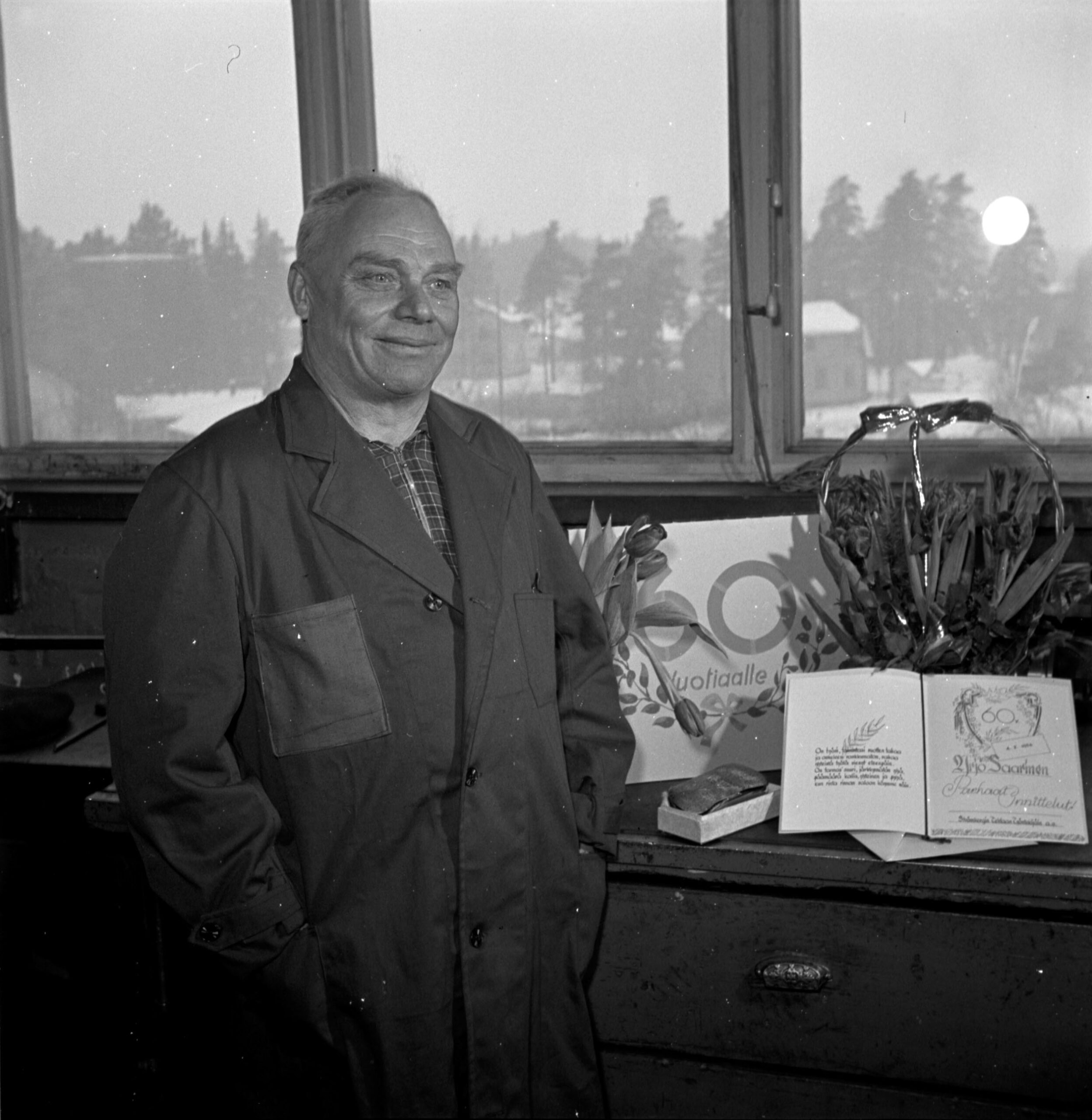 Kuva: Työmies ja onnittelukortit (1954). P.O. Jansson / Tekniikan museo, A ABB Strömberg –kokoelma